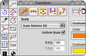 Beside editing graphics, Cenon empowers you to work on graphic objects by applying transformations like moving, rotating, arranging, as well as by applying complex manipulations like uniting, joining and punching.
