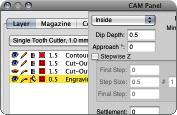 Cenon integrates the ability to control a CNC machine or plotter directly (DNC). For this purpose, Cenon provides Position-Management, Tool-Magazine, and last but not least a Control-Panel.