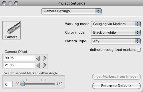 | | Camera Settings - customizing the job. Cenon offers three modes of operation for flexible material, rigid material, or direct output to the location of each recognized marking. The latter mode allows, for example, the direct drilling of front panels at each recognized marking, without even having to prepare any output. |